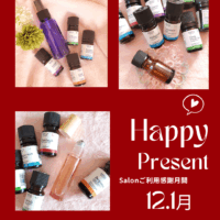 早いもので12月。 1年が過ぎるものあっという間です。 12月と1月は Salonでトリートメントを受けていただいた方に 香りのプレゼントをご用意しています。 ・アロマミスト ・香水 ・ブレンド精油 のいずれかからお選び …